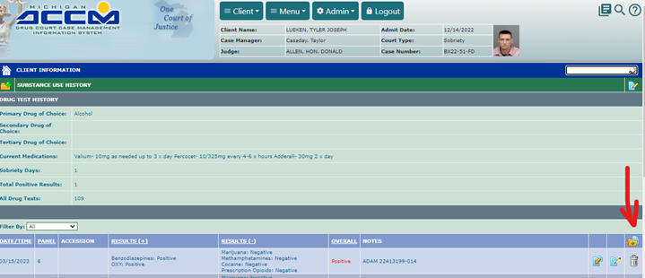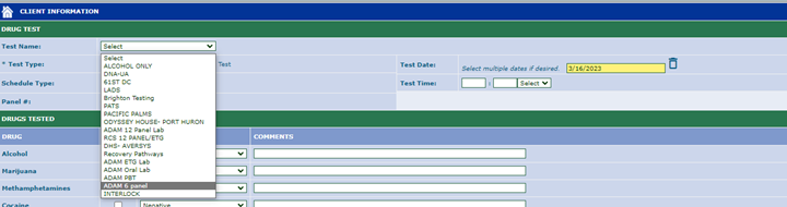- Click on Client> Drug testing